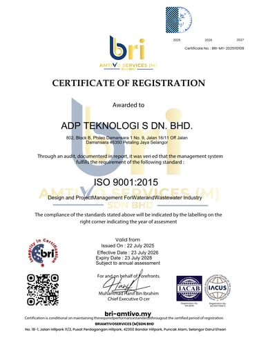 As a specialist engineering and project management consultancy, ADP Teknologi is committed to delivering services that meet the highest standards of quality, compliance and professional integrity.
